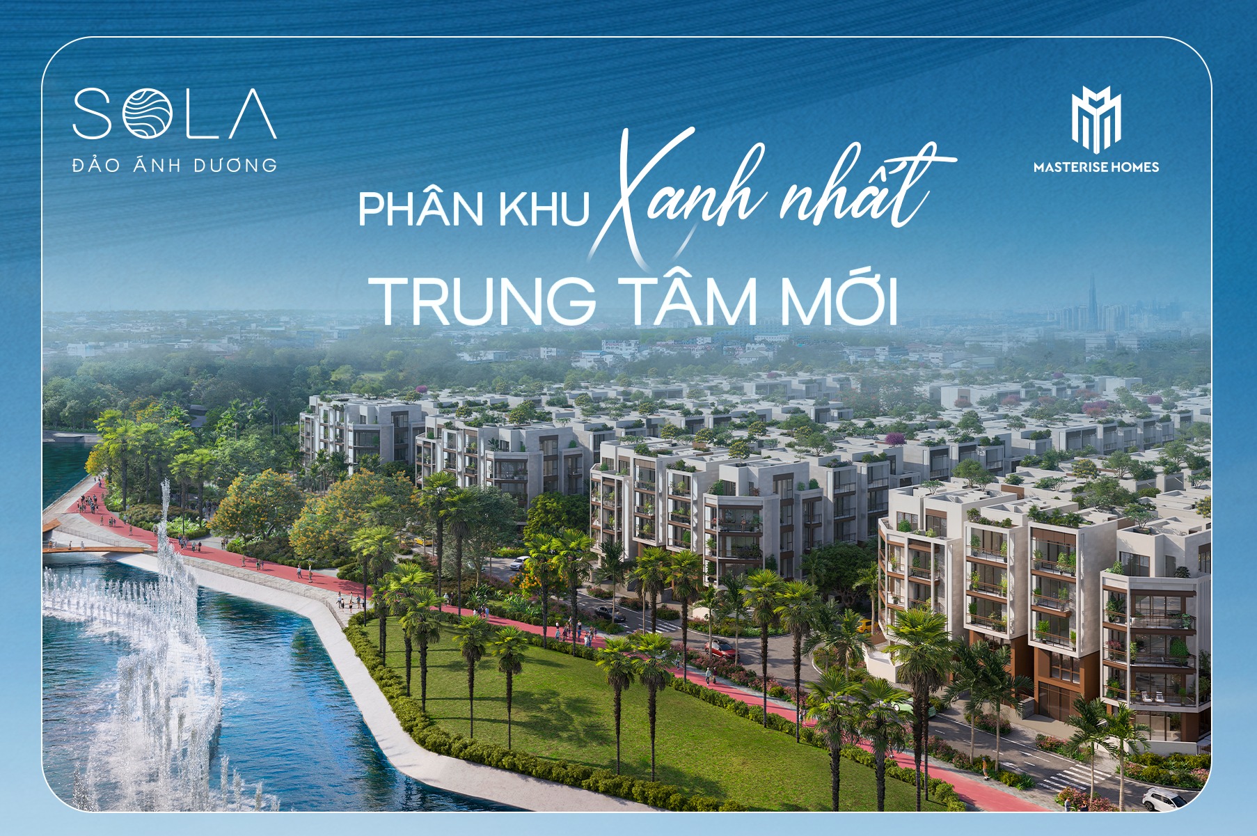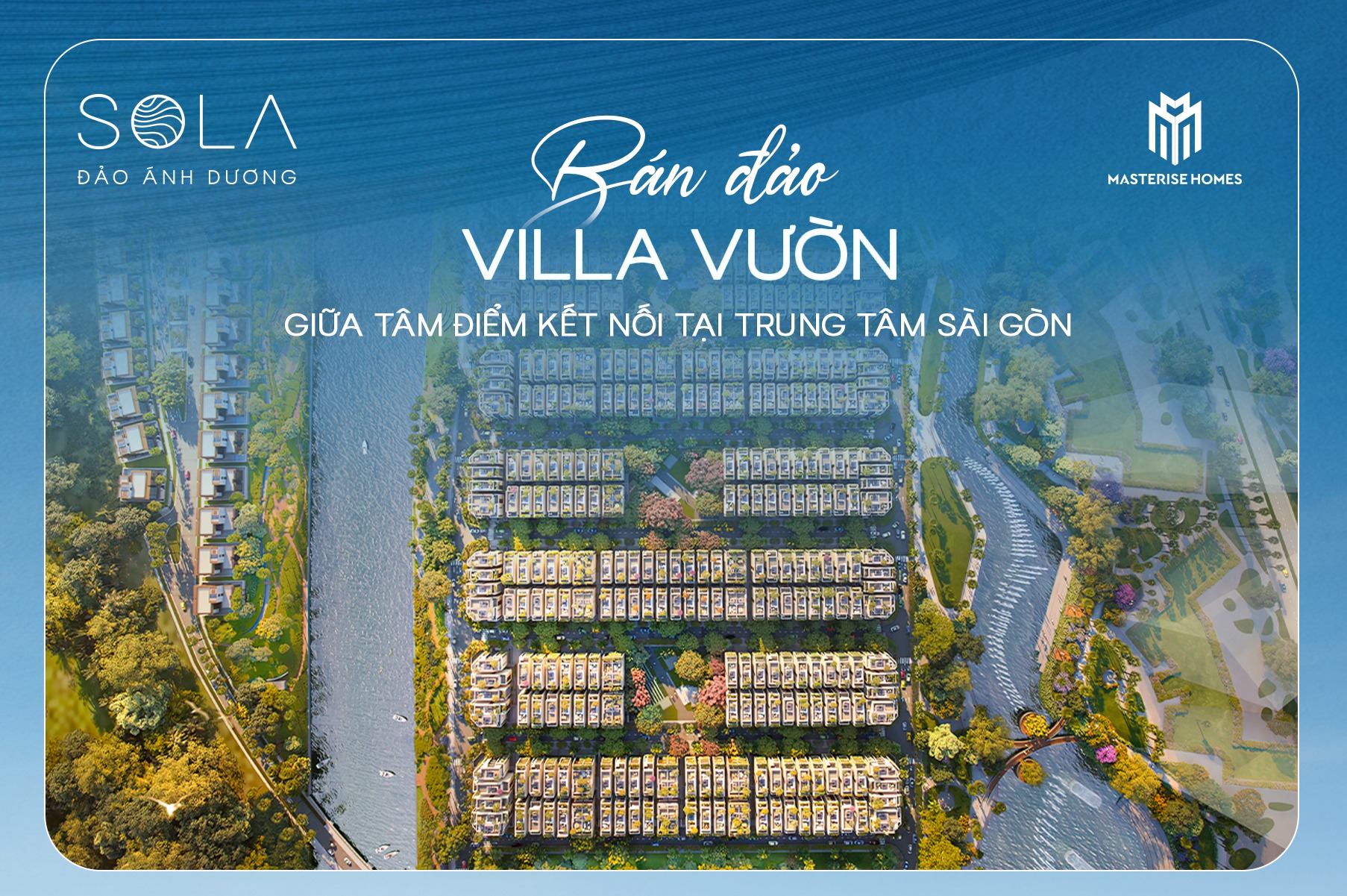Nối tiếp phân khu nhà phố thương mại SOHO đã hoàn thiện, ra mắt phân khu cao tầng Masteri Grand View thành công, Masterise Homes tiếp tục khởi động dự án SOLA - Đảo Ánh Dương, phân khu bán đảo villa vườn có ba mặt nước ôm trọn tại The Global City.